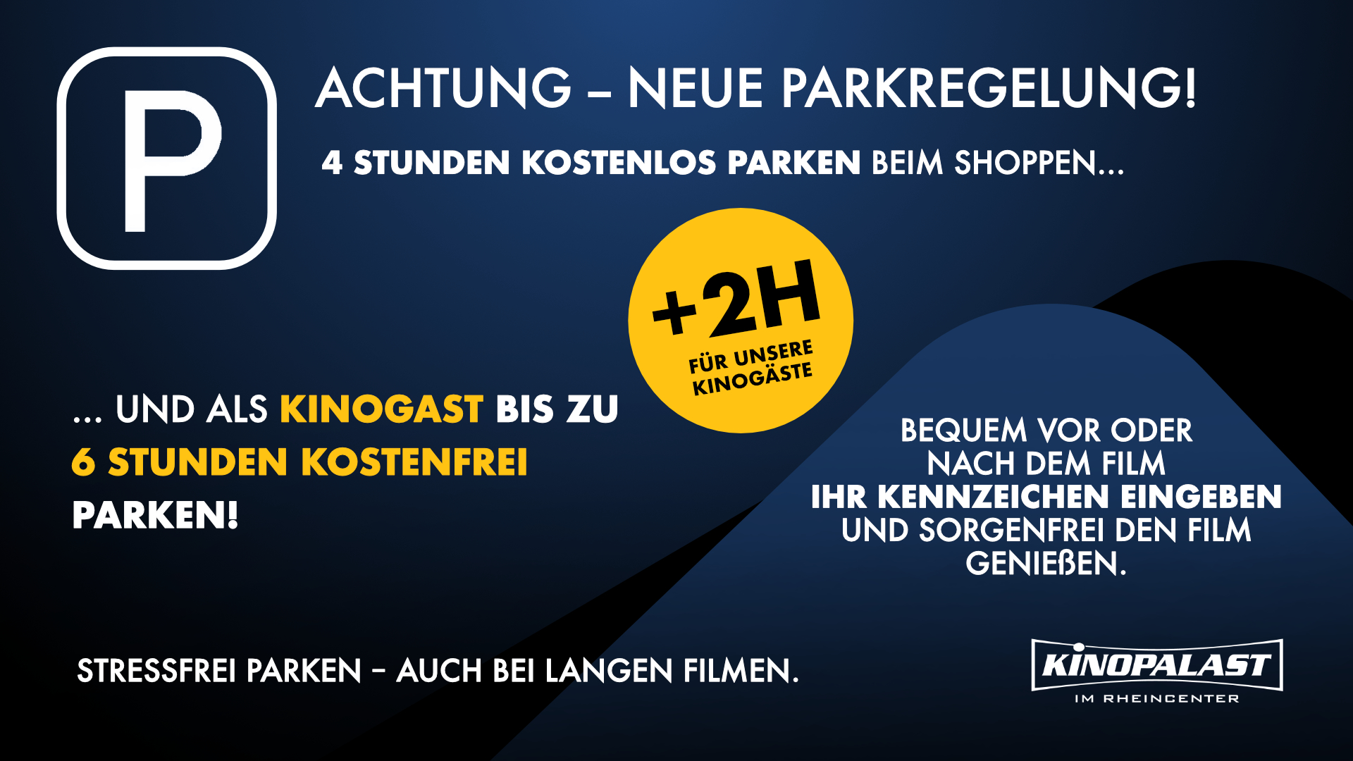 Ein Palast, wie er im Buche steht – der Kinopalast Weil: Fünf großzügige, moderne und voll klimatisierte Säle, ein großes Foyer im zweiten Obergeschoss des RHEINCENTERs. Der begeisterte Kinogänger sitzt nicht beengt, dicht auf dicht, sondern hat in großzügig bestuhlten Sälen Platz in Hülle und Fülle. Es stimmt schon: Kein Kino weit und breit ist so leicht zu erreichen und bietet gleichzeitig die Möglichkeit, an Ort und Stelle unter einem Dach 4 Stunden gratis zu parken.