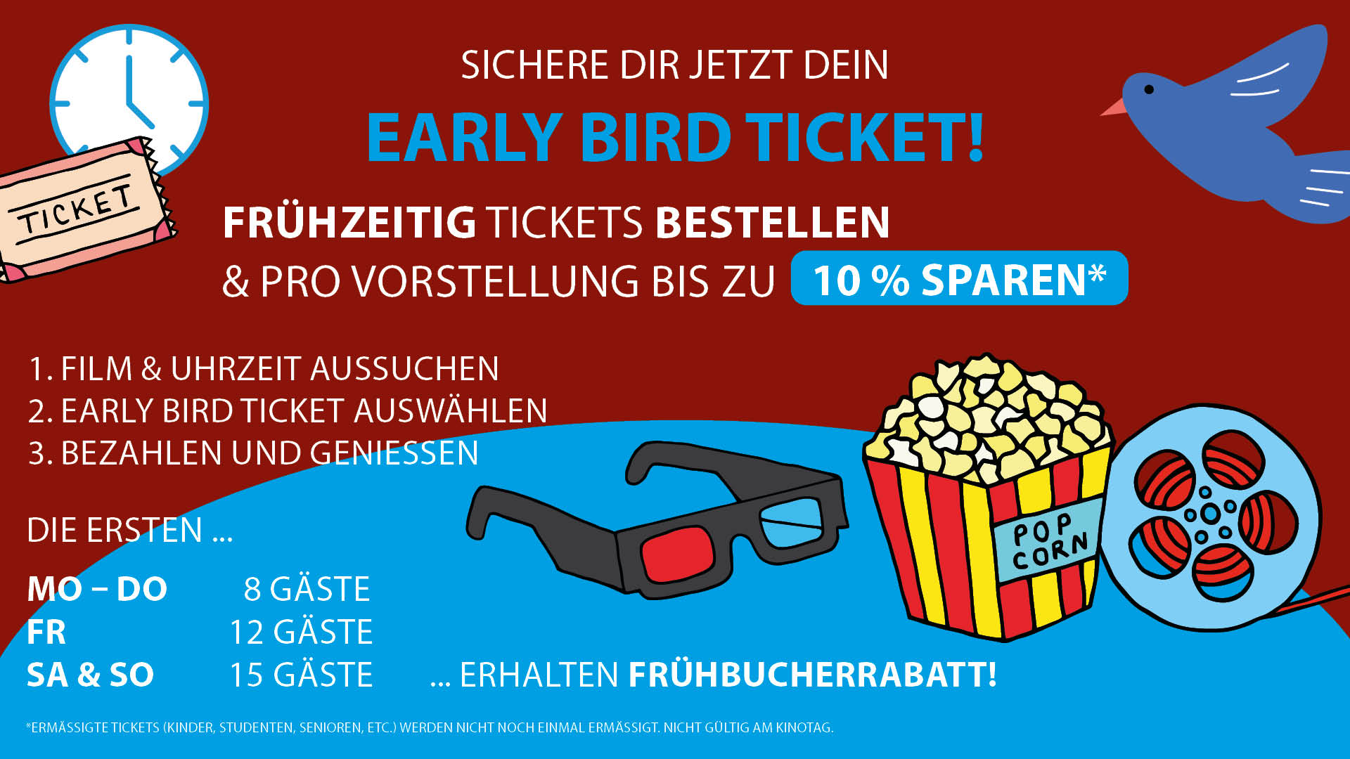 Wir emfangen euch 30 Minuten vor Vorstellungsbeginn in unserer Event Bar und verwöhnen euch mit einem Glas Sekt zur Einstimmung auf gute Vibes!
